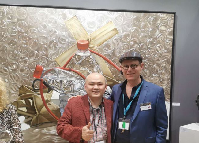 上面视频(有中文字幕)法国华裔艺术家 蔡平配 与独立沙龙负责人举杯庆祝并介绍作品